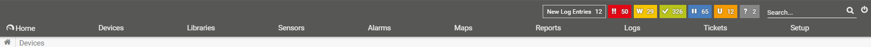 To navigate the PRTG web interface, the main menu bar is the best starting point. We recommend that you take a few minutes to familiarize yourself with the main menu bar and its submenus.