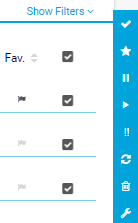 In a table list, you can select several objects by enabling the check boxes on the right. You can also select all objects on the page at once by enabling the check box in the table header.