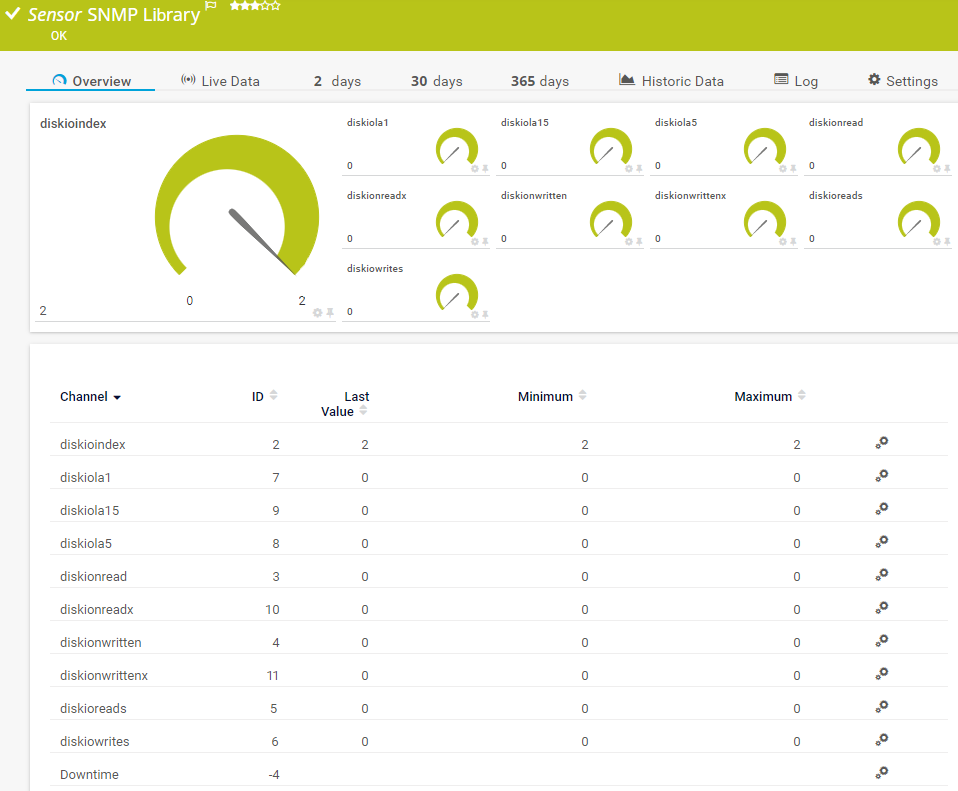 SNMP Custom Advanced: For up to 10 channels for 10 OIDs each. For example, 22 selected single values result in 3 sensors: 2 sensors with 10 channels and 1 sensor with 2 channels.